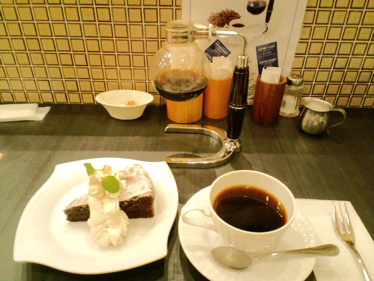 は仕事帰りに時々訪れる珈琲店の紹介です。注文ごとに1杯立てのサイフォンの珈琲。香りも良くて 2杯分ぐらいはあります。店内も静かで(訪れるのが夜だからかもしれませんが)ゆっくりとした時間と、香り豊かな
