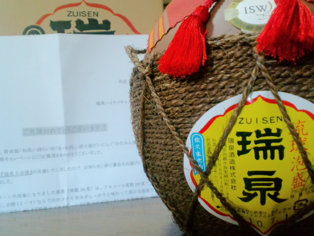 素敵通信の愛読者様でしたらきっと記憶の片隅にあるかもしれませんね。 先のお盆休みの最終日に友人達と呑んだ 泡盛 のキャンペーンでこれが当選したことを   そして今回の lovelyは 『瑞泉』 です。この瑞泉壷は2007年度の  ドイツ インターナショナル  スピリッツ  アワードの金賞 を受賞したそう。 きっと美味しい古酒(クース) やろうなぁ。 楽しみやなぁって思ったのもつかのま。  上の娘が