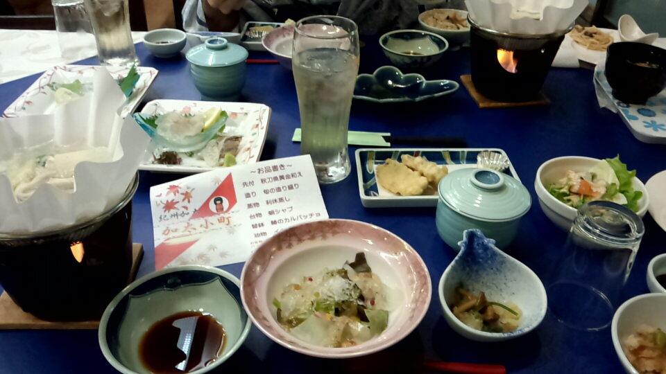 露天風呂にゆっくりつかって夕食。今回は下の子と二人で超のんびり旅。