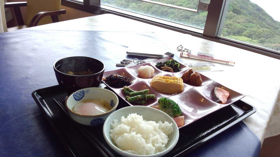 …そして朝、朝の海を眺めながらバイキングの朝食を頂きました。