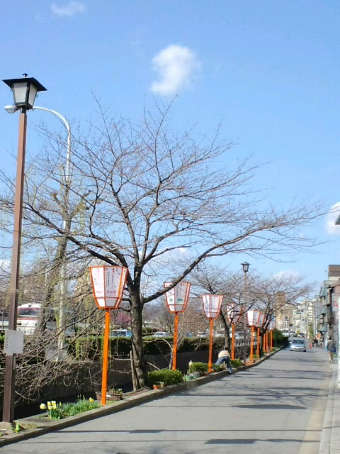 は『鴨川沿い』。この日はまだ肌寒く、“春到来”と云う感じではなかったのですが、鴨川沿いにも“京おどり”の花提灯が早々と吊られていました。この京おどりは、本日4月2日から開催されます。この時、寒さで縮こまっていた