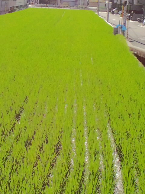 近くの田んぼ。 新緑だけは目に爽やかです。 そして二枚目は