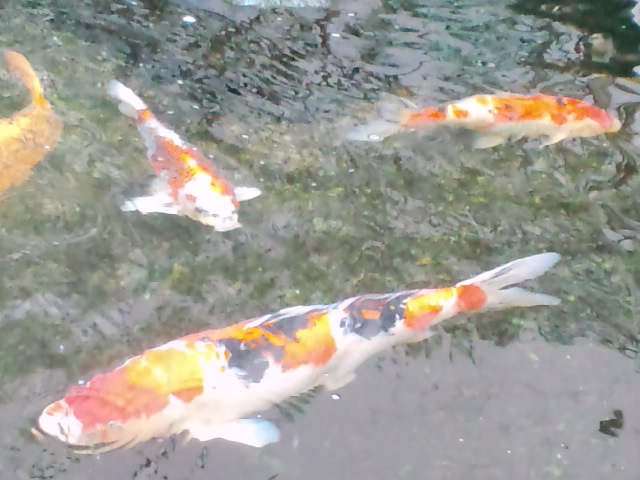 ビルの一角に鯉の池が…。