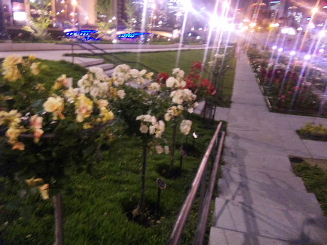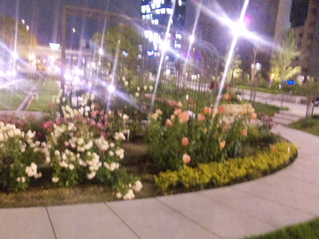 は 『薔薇』 。 会社帰りに 友人と中之島バラ園に訪れました。 ここは明治から開園された老舗公園。 そして昨年5月にリニューアルオープンして以前より都会的なレイアウトになったみたいです。 堂島川と土佐堀川に挟まれた文字通り中の島に位置する園は夜