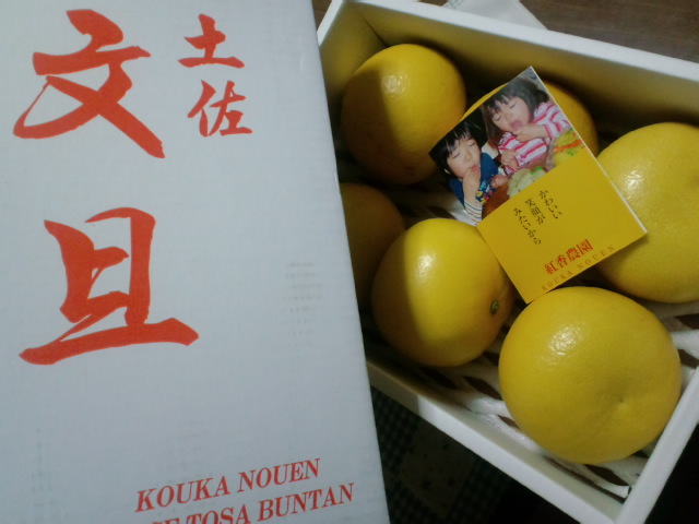 。上の娘のお友達から“文旦”が送られてきました。聞くと年末年始は故郷である高知へ帰郷するとか。温室の土佐文旦はお正月に向けての贈答に人気らしいです。