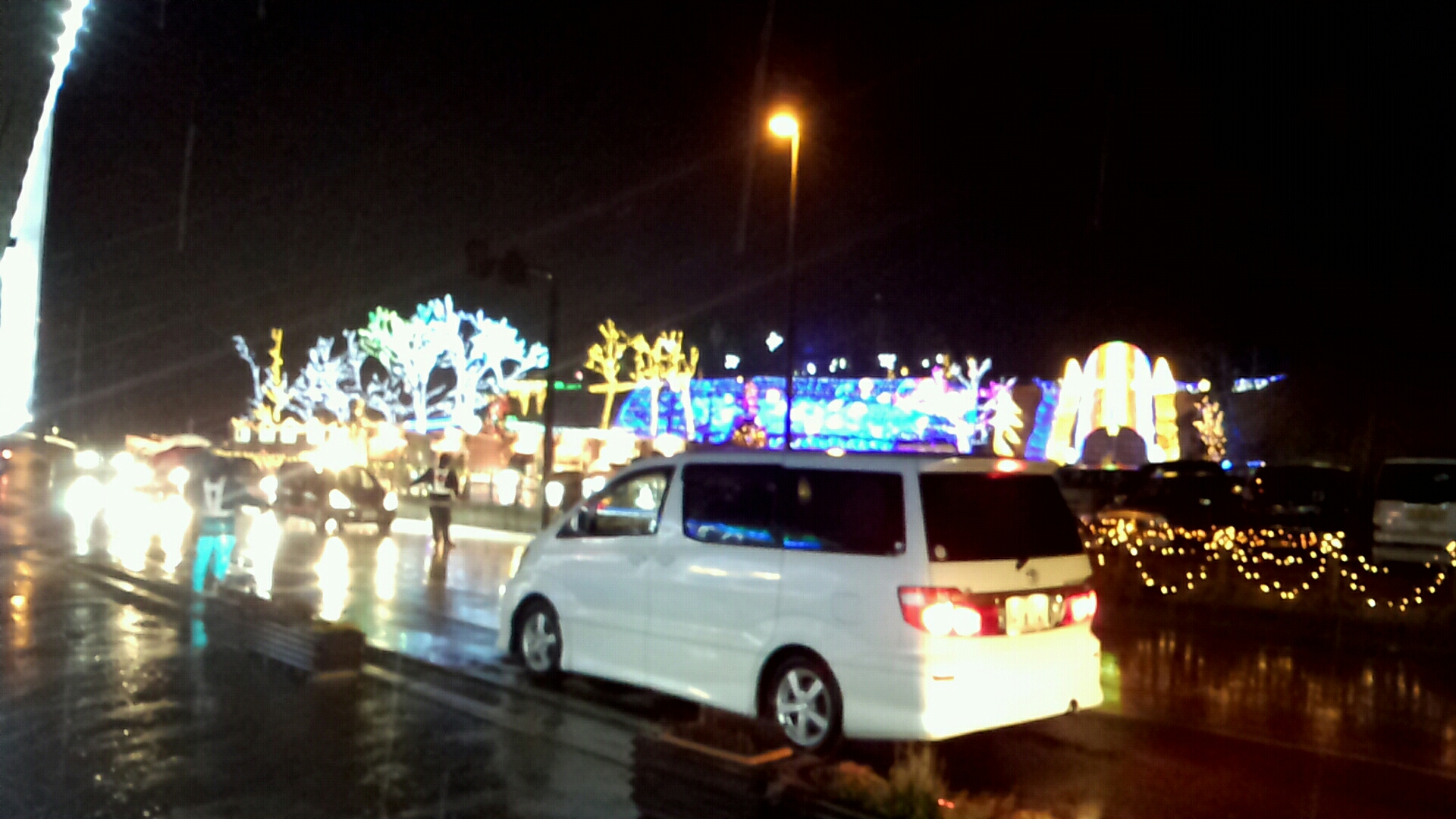 砂丘会館から催しのイベント、花火を見て帰ることにしました。一応遠くからですがイルミもパチリ…車が横切りはりました(--#)