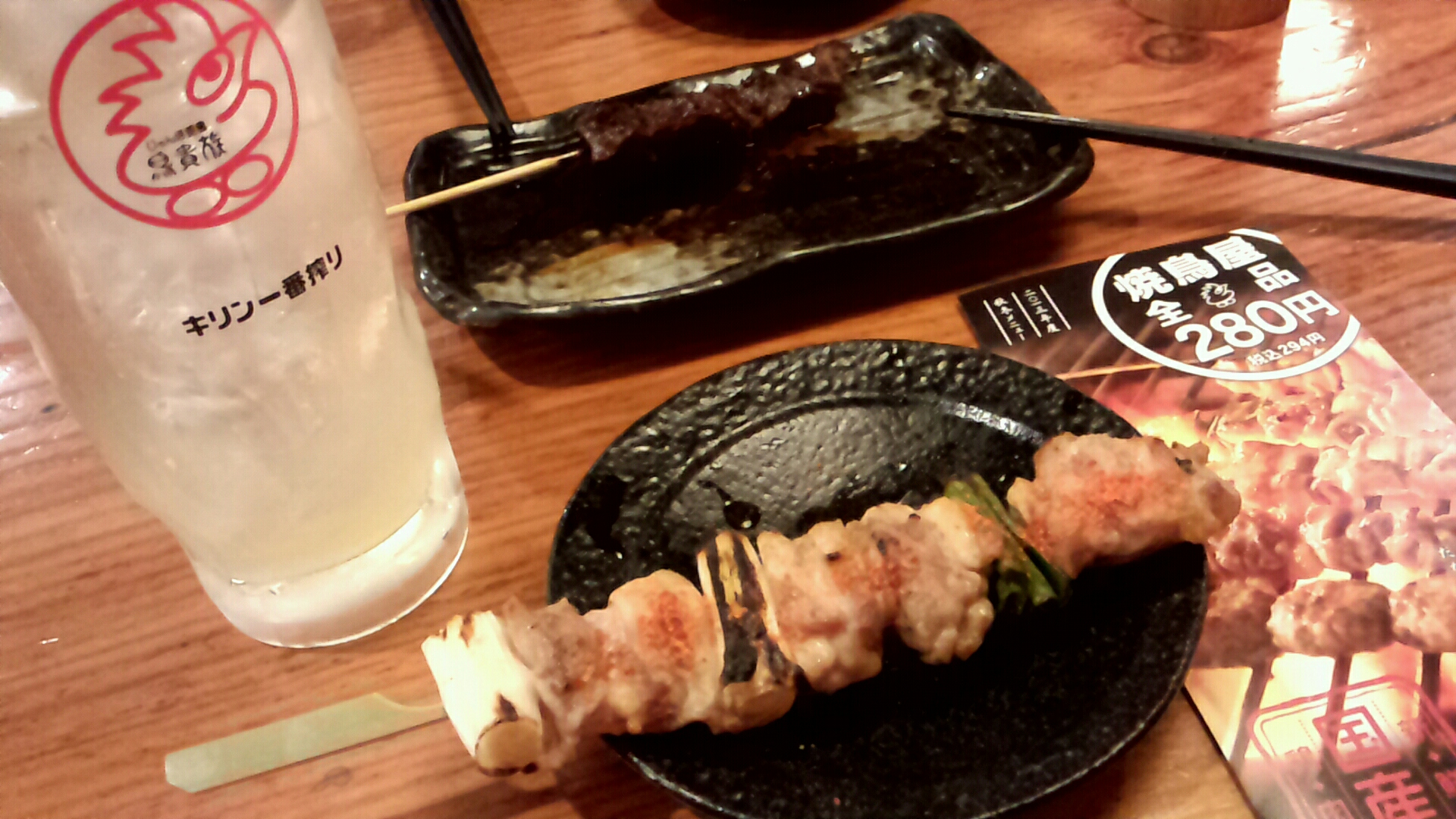 帰ってから地元にある某鳥屋(どこかわかりますねww)で深夜の呑み。焼き鳥で黒ビールです!(^^)!